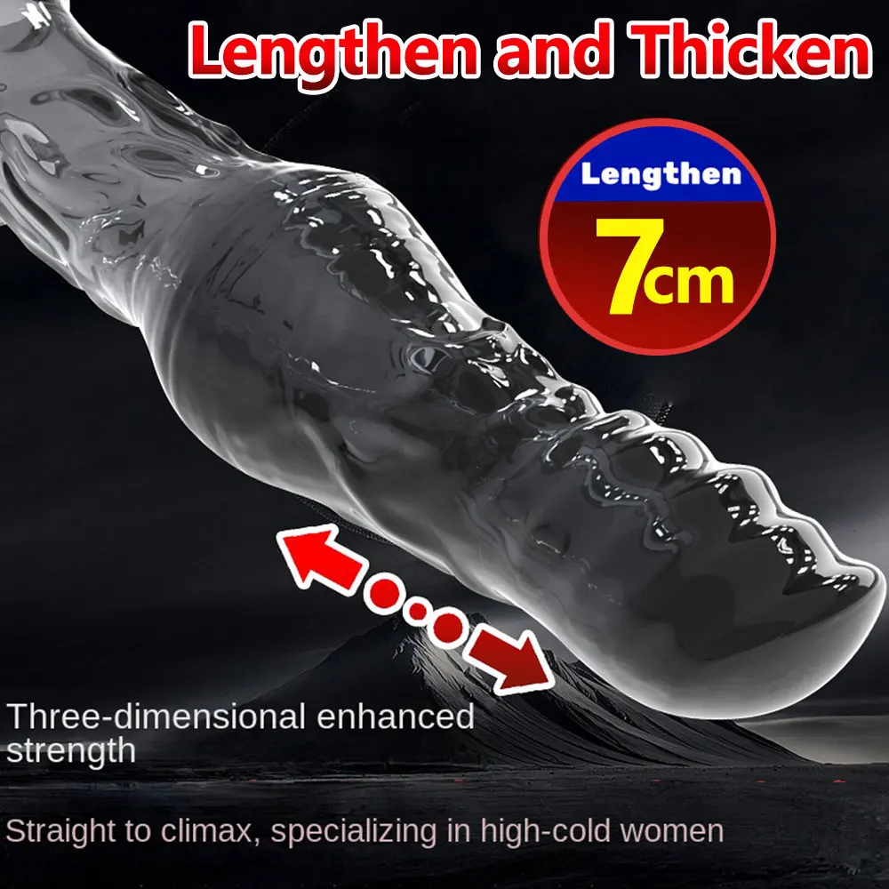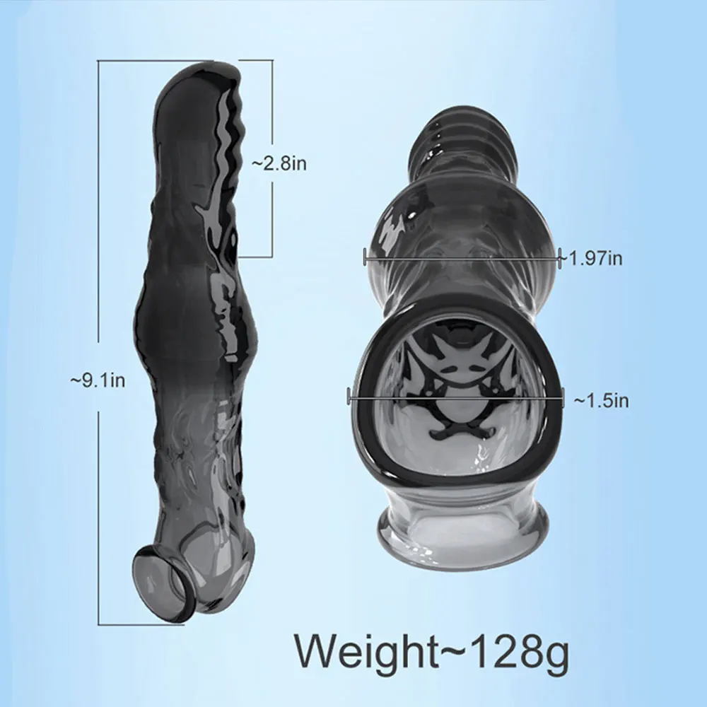 23cm Vibrating Penis Enlargement Sleeve Reusable Condoms Male Penis Cock Ring Extender Sex Toys for Men G Spot Delay Ejaculation
