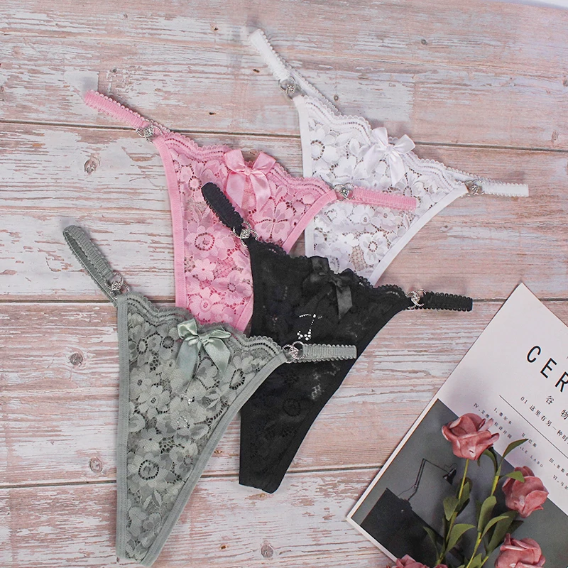 Thin Strap Low Waist Sexy Panties Women Bowknot Lace Perspective Underwear Thong Ladies Comfortable Briefs Lingere Intimates Underpants