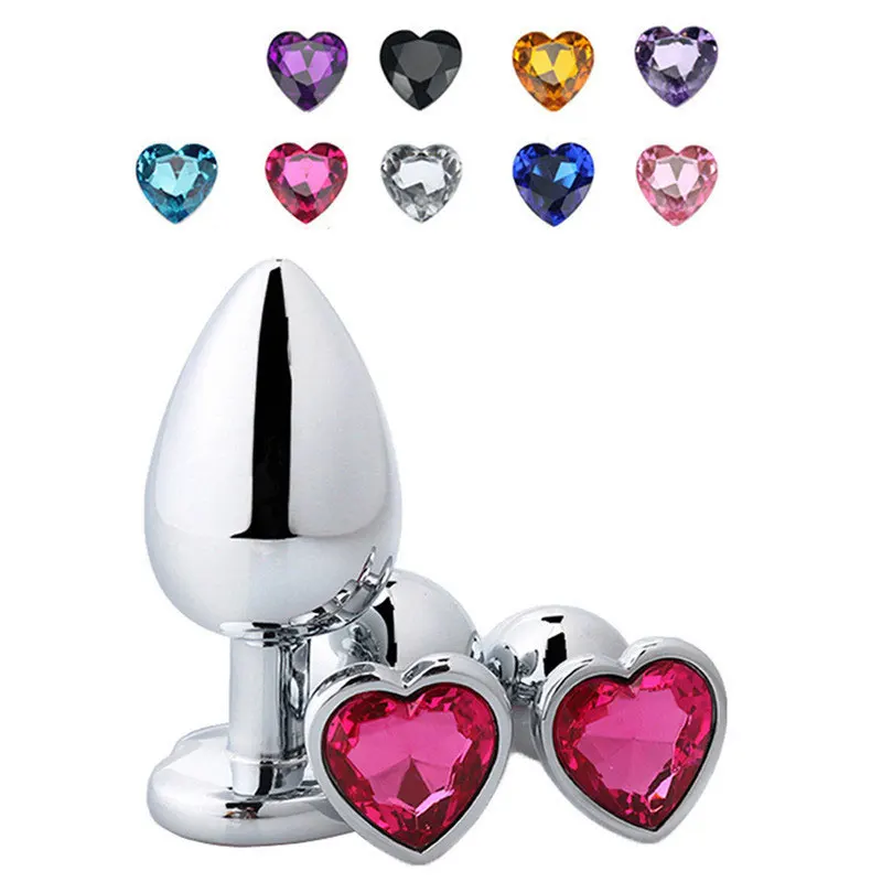 3 size anal plug heart stainless steel crystal anal plug detachable butt plug stimulator anal sex toy prostate massager dildo