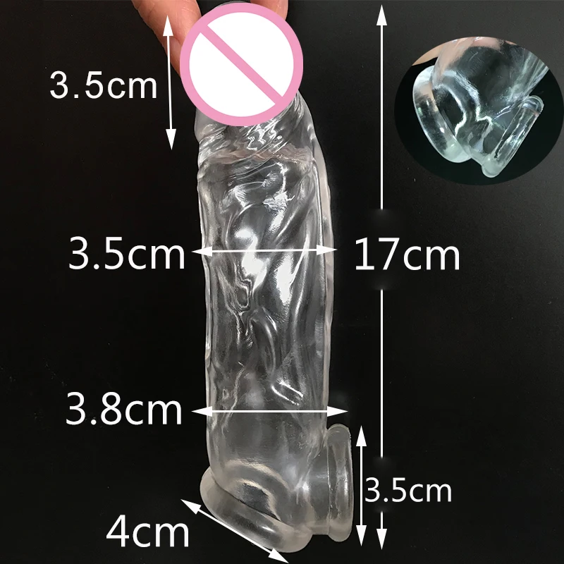 Penis sleeve condom. Double Penetration, enhance your pleasure. Slide the extender on to your erection with a generous helping of water-based lube.To get the most of this whopping great sleeve, make sure you slather the inner and outer surfaces with plenty of water-based lube for maximum comfort and pleasure. Item: Penis sleeve condom Material: soft silicone Color: clear, flesh, black Size: as picture Function: Lengthen, Delay Ejaculation Package Included: 1 pcs penis extender sleeve